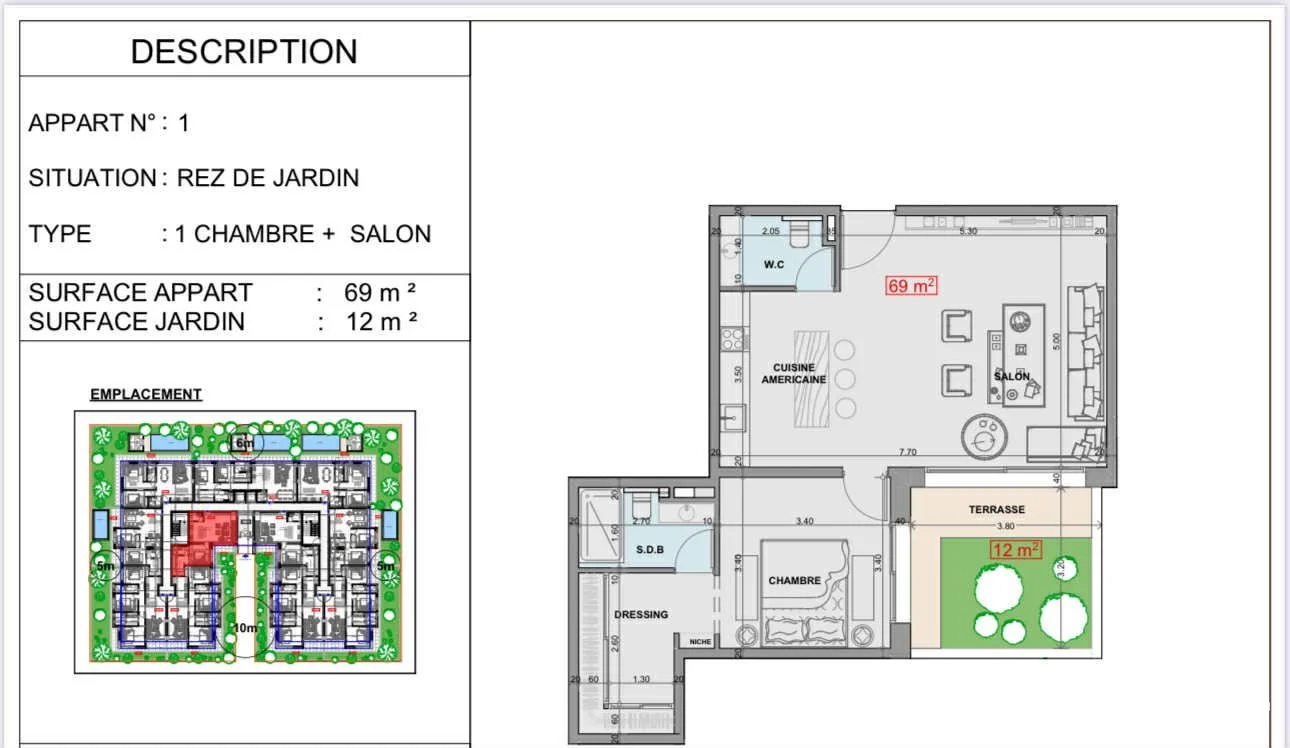 التقديم العام شقة رائعة بمساحة 40 م² مجددة بالكامل، تقع في الطابق الأول من إقامة هادئة وآمنة. هذا العقار الفريد يوفر إطلالة خلابة على الأطلس، مما يخلق إطار حياة فريد ومميز. المساحات و