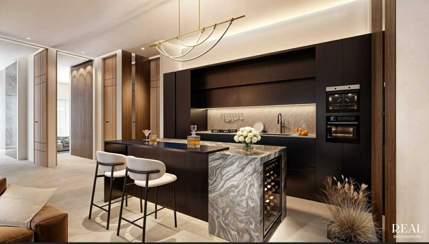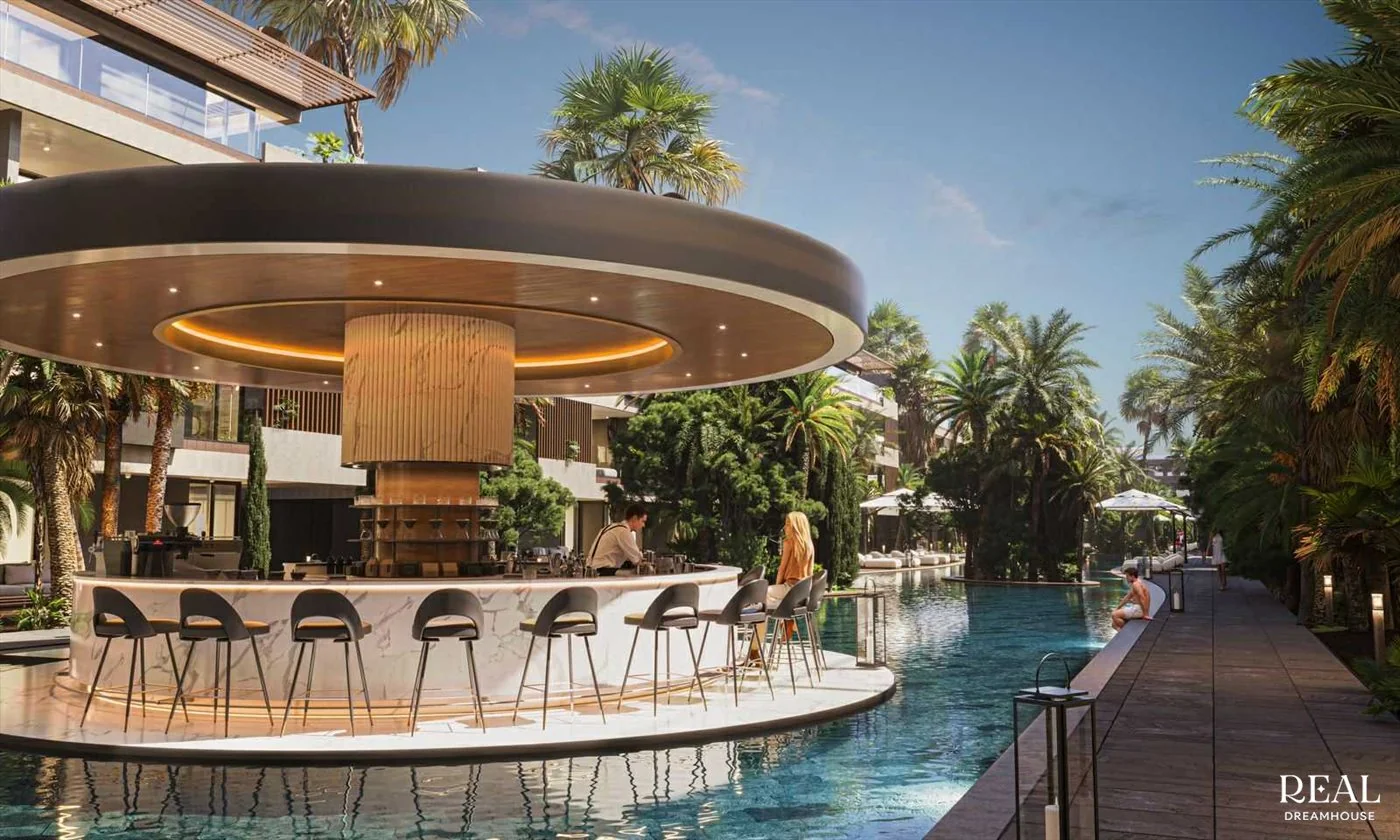 بار المسبح وصالة - بار دائري التصميم بجانب المسبح، مع هندسته المعمارية المميزة وإضاءة أجواءه المتطورة، يخلق مكانًا استثنائيًا للتواصل الاجتماعي. مثالي للحظات بين السكان في جو أنيق وغير رسمي.