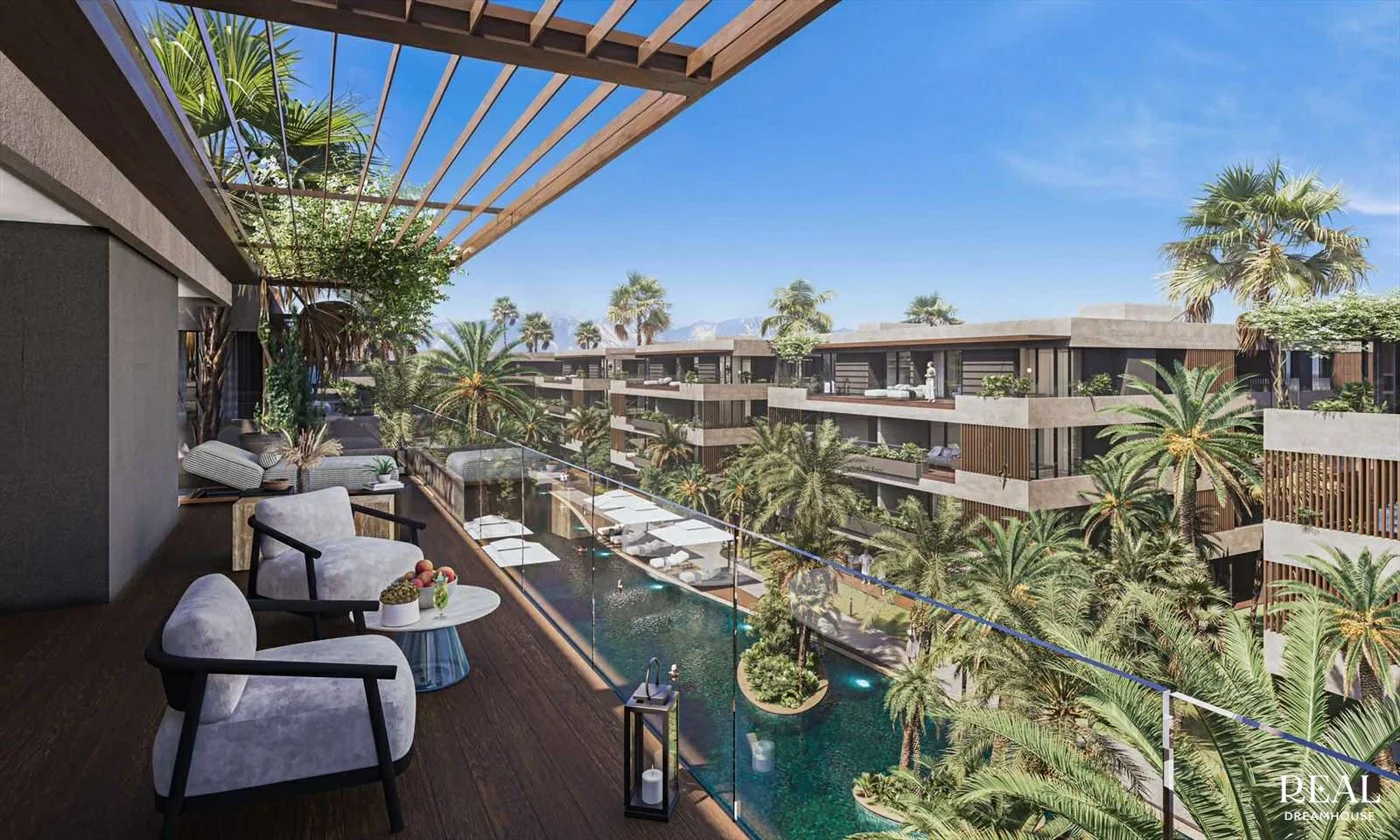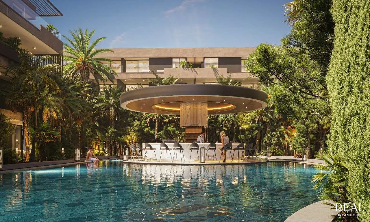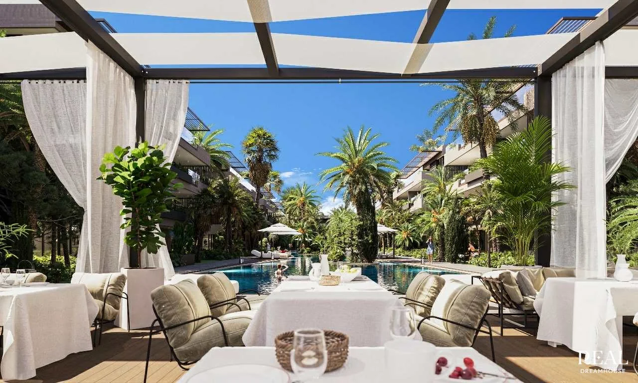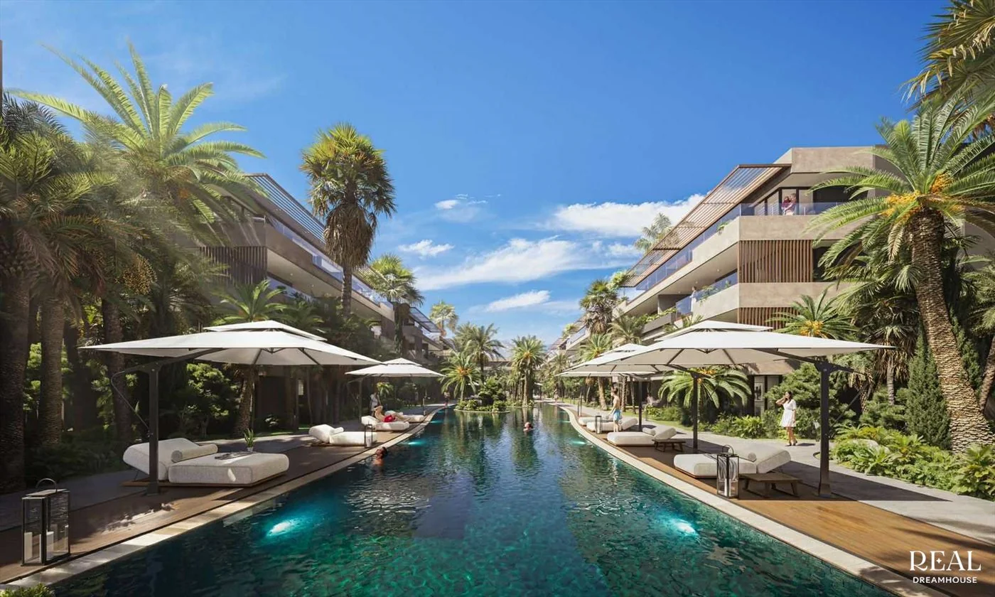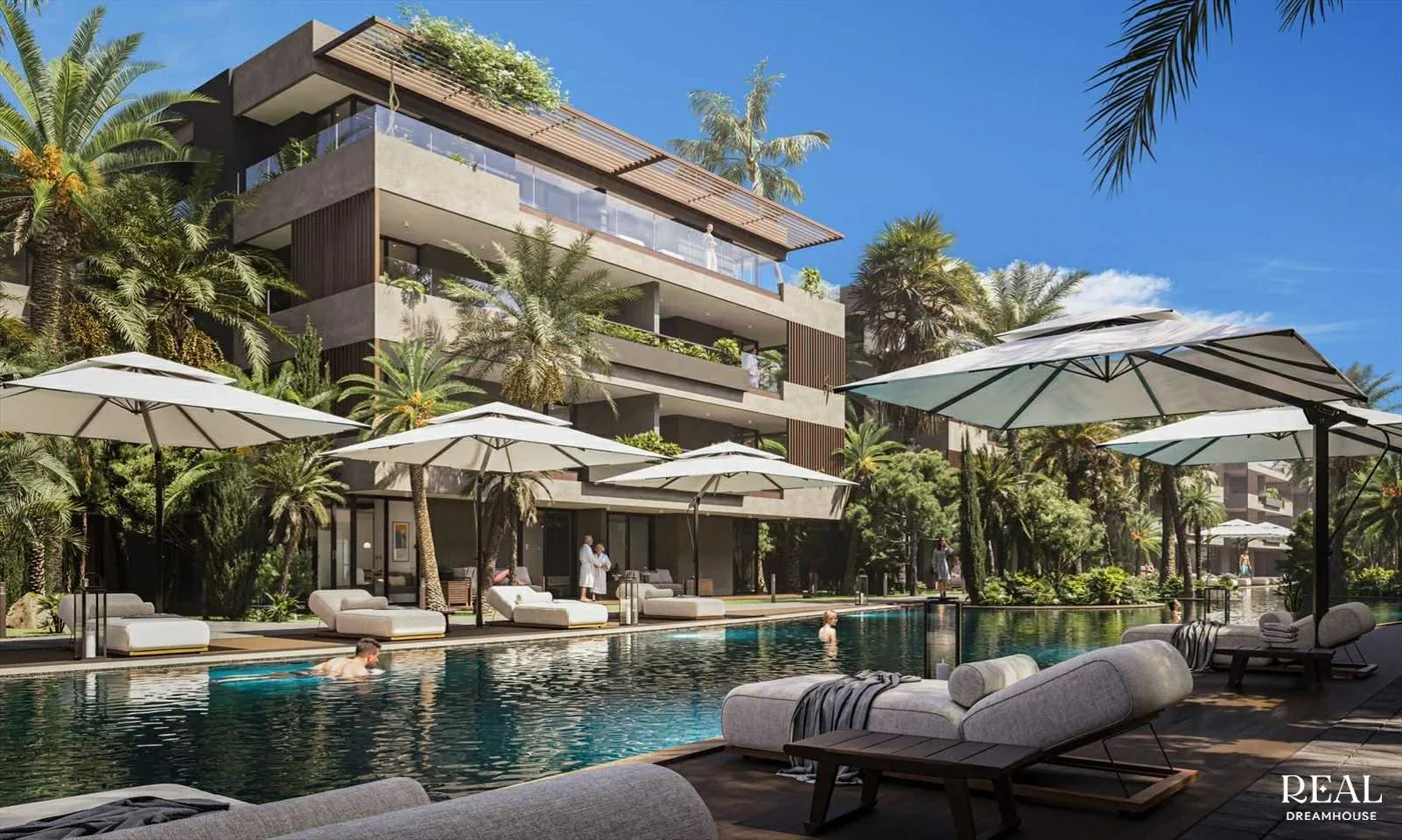 تنتشر الإقامة بهندسة معمارية حديثة بخطوط سلسة، مدمجة تمامًا في إطار من الخضرة الفاخرة. توفر المباني المتدرجة شرفات وتراسات واسعة، مما يخلق تناغمًا مثاليًا بين المساحات الداخلية والخارجية. تعكس الواجهات الأنيقة، المكسوة بمواد نبيلة وواقيات شمس خشبية، رقيًا معماريًا معاصرًا.