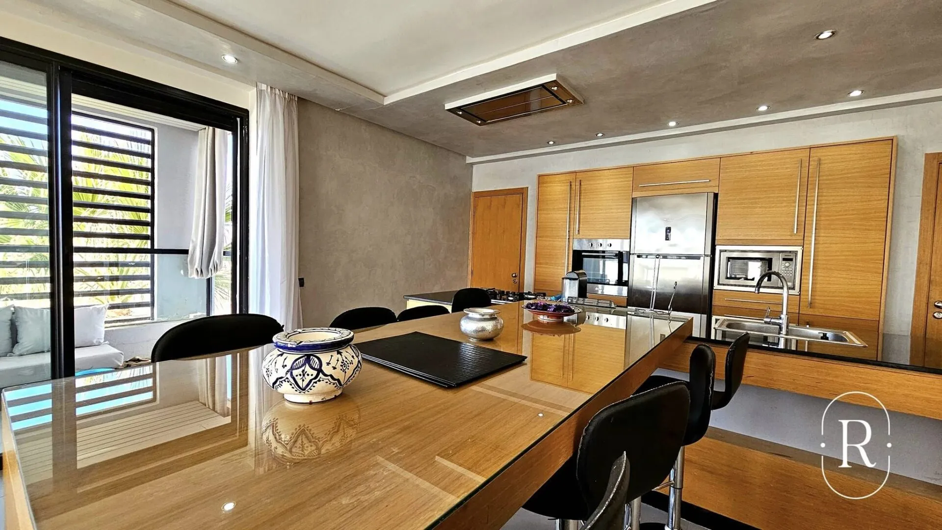 Costruita su un terreno di 500 M2 e una superficie abitabile di 130 M2 su due livelli, ovvero un totale di 300 M2 di spazio abitabile, la villa è disposta in due parti più il tetto con vasca idromassaggio e vista sull'Atlante, si compone di 6 suite, 2 cucine, 2 ripostigli, 2 sale da pranzo, 2 ampi saloni, 6 bagni, 2 servizi igienici ospiti contemporanei standard di isolamento europei.