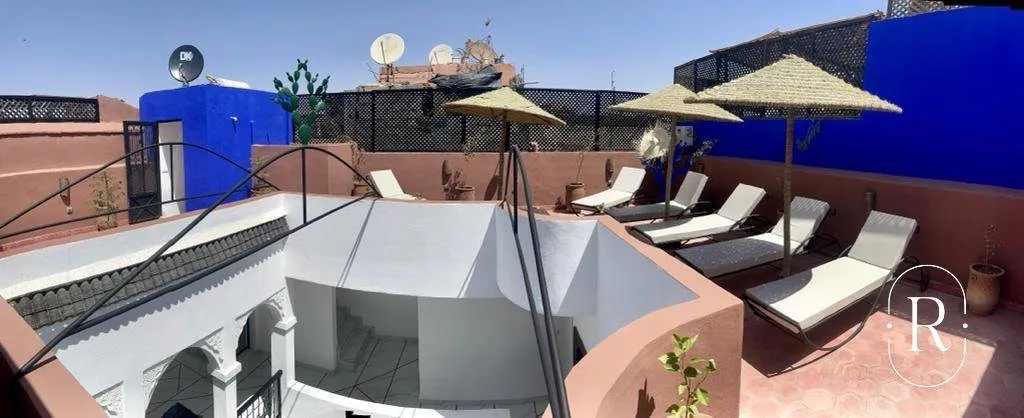 Real-dreamhouse vous propose à la vente ce magnifique Riad située à 2 min de la Place Jamaa El Fna proche du Parking Douar Grouar Rez de chaussé: Cuisine américaine ouvert sur salon salle à manger, coin Tv, patio et bassin 1er étage: 3 suites avec salle d'eau toilette, joliment décorée 2éme étage: Roof top ensoleillé il vous offrira le confort et le calme absolu Venez profitez de l'experience exceptionnelle de séjourner au coeur de la Medina Pour plus d'information veuillez nous contacter en PV.